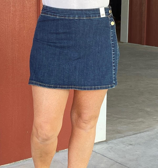 Shorts with a front skirt. This is super cute and would look nice with a casual or dressy top and flip flops or sandals. Model wears a 6 in jeans/shorts.