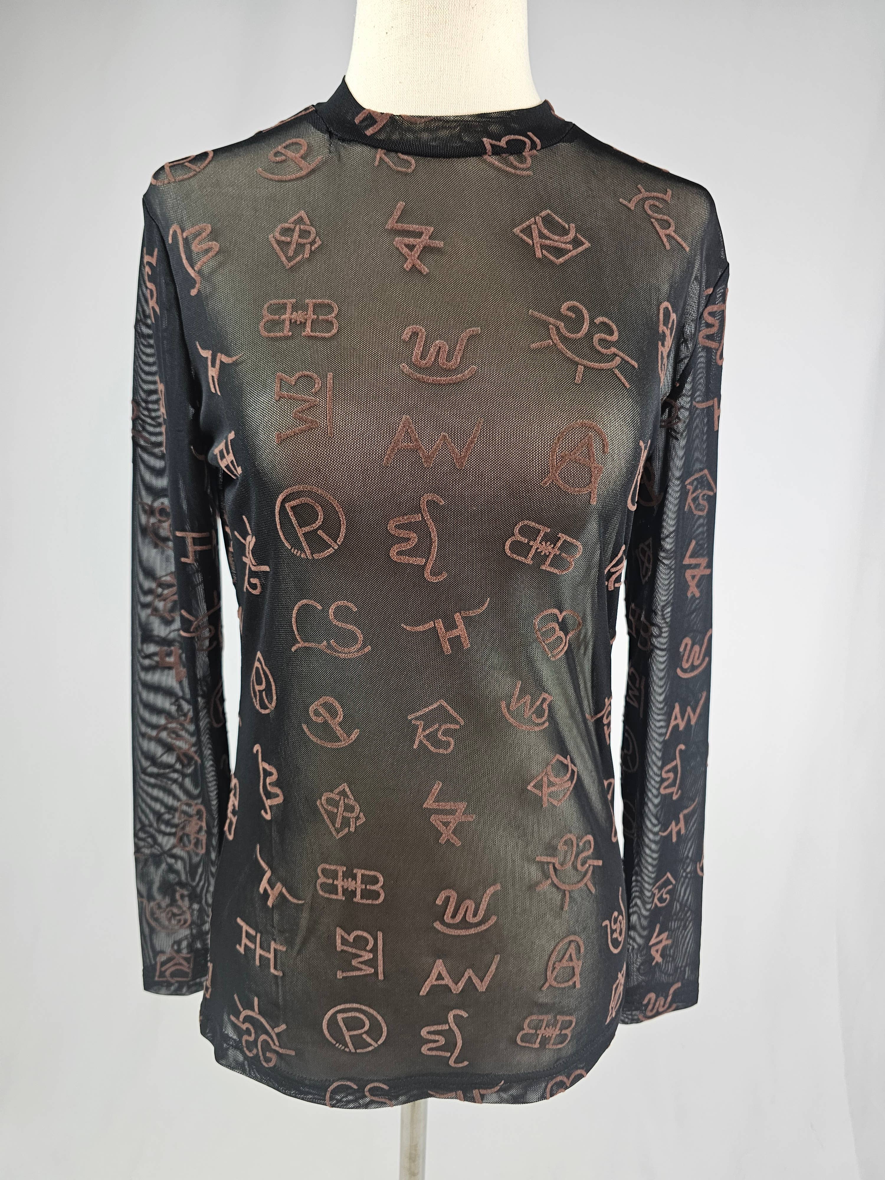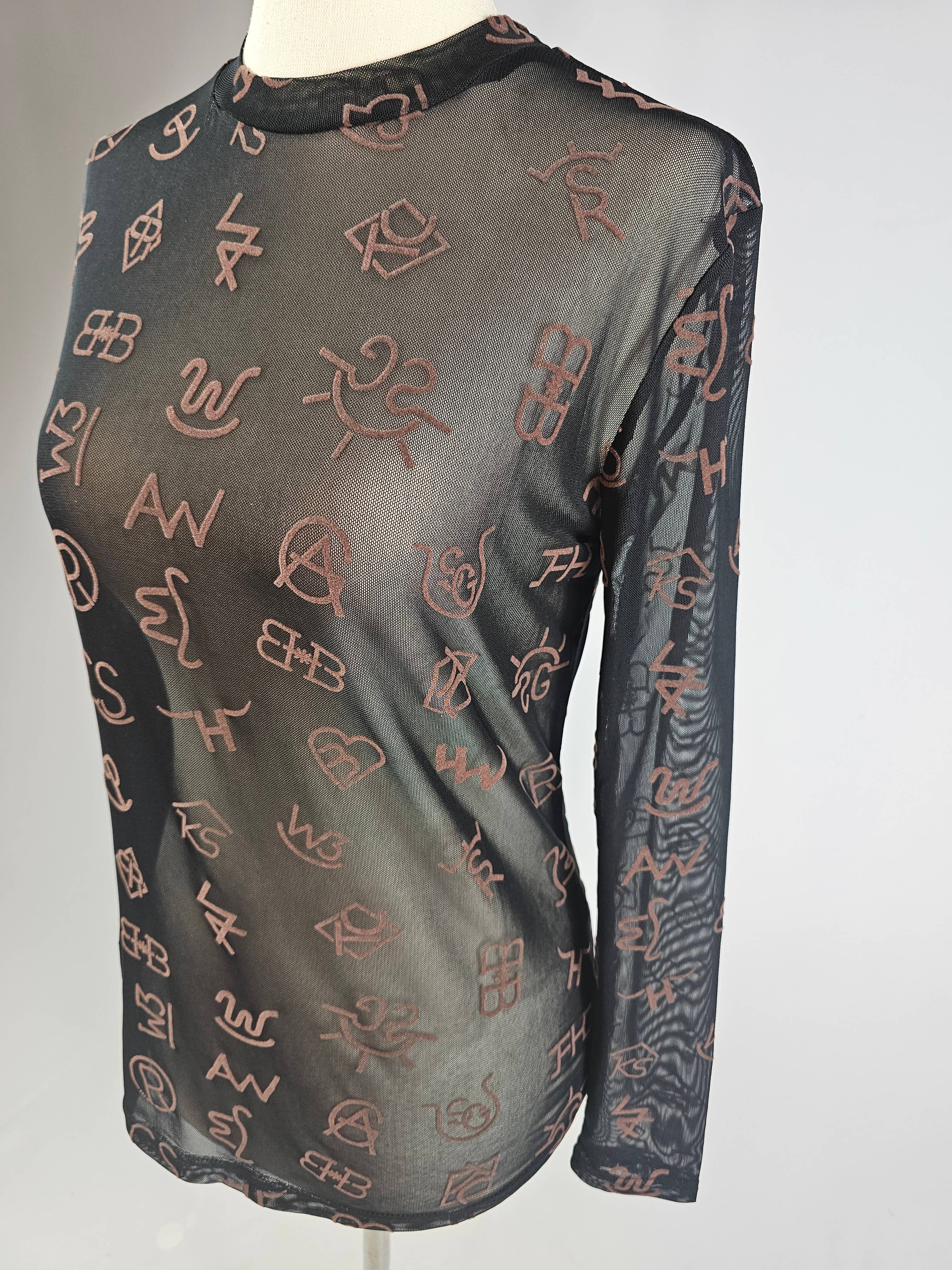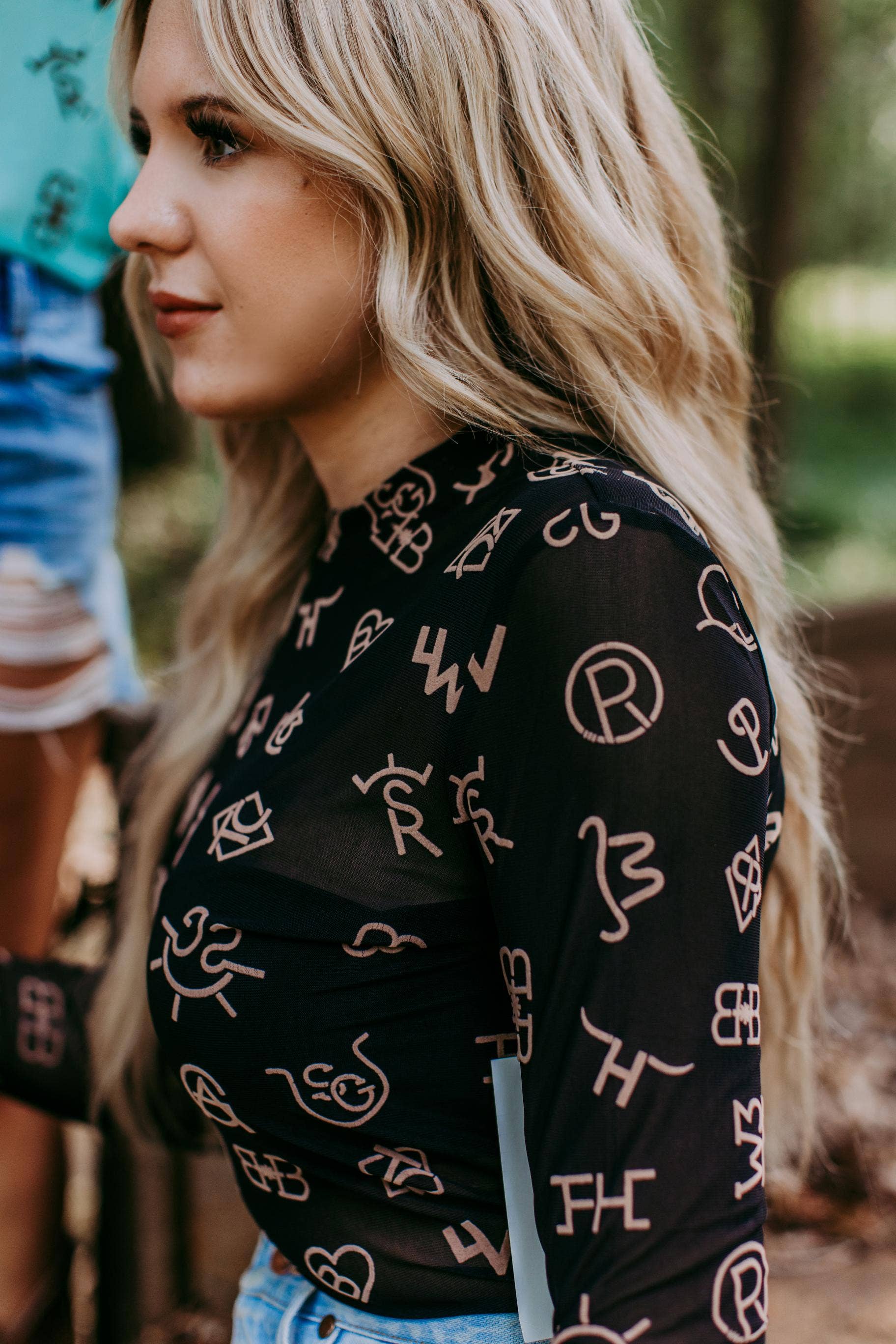 Black - Western Cowgirl Branded 3D Print Mesh Top
