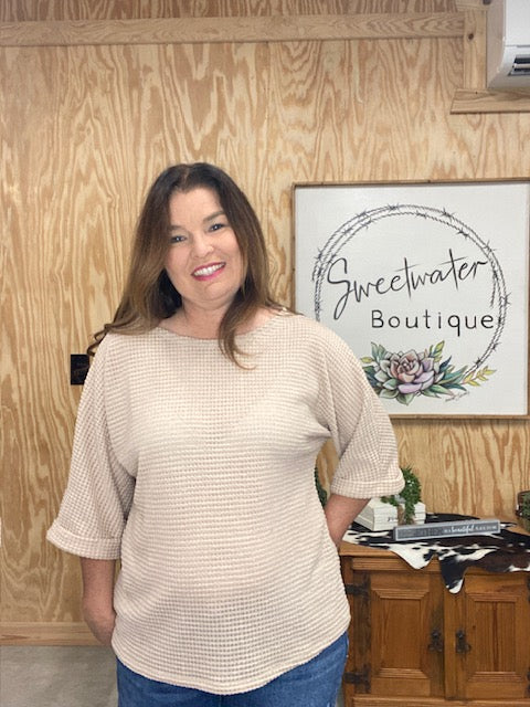 Indulge in the ultimate cozy comfort with our 3/4 Sleeve Waffle shirt. Made with super soft fabric. The perfect shirt for date night and dress it up with jewelry. The perfect shirt to wear with jeans. Available in 2 colors.