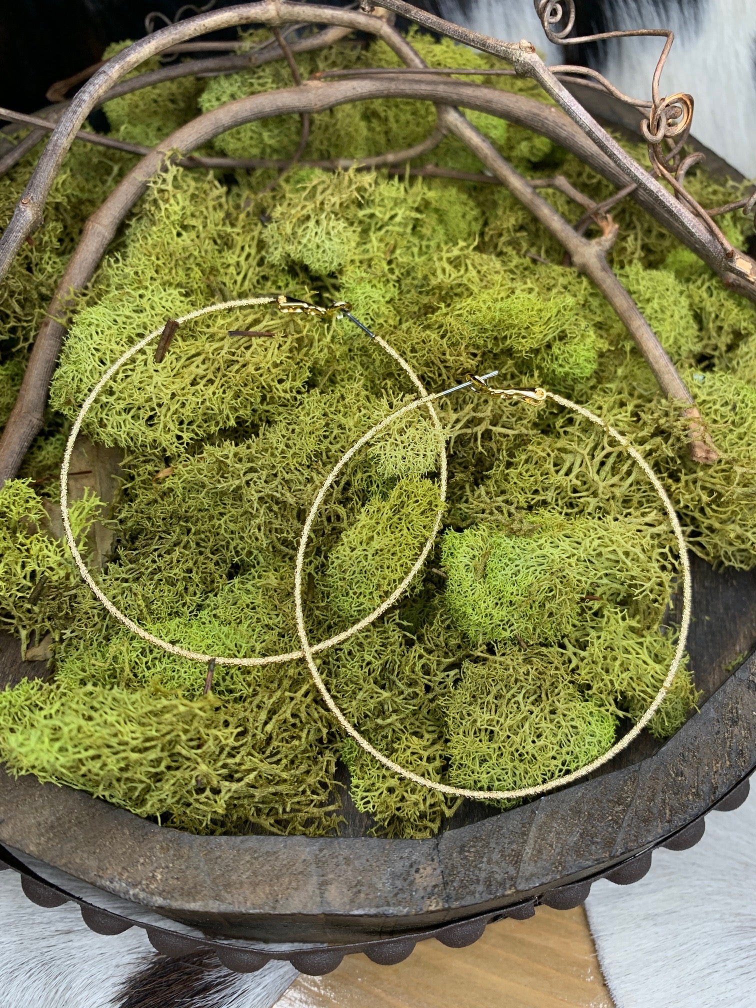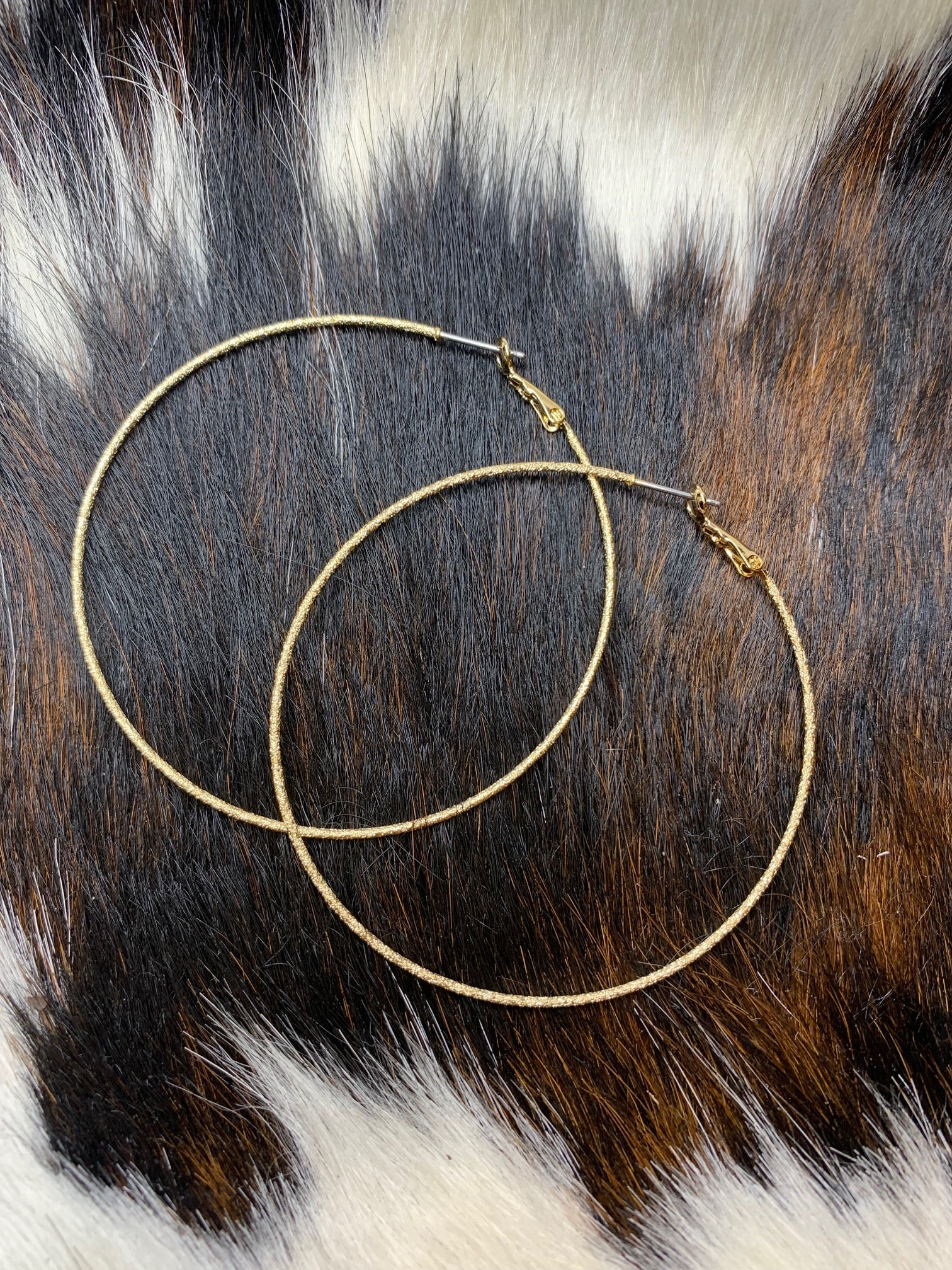 - Thin, oversized gold hoops.